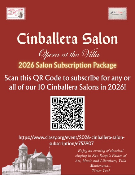 Cinballera Salon: Monday, March 16, 2026, 7:00 p.m. “Songs of Antiquity”! $25. Use QR code below to buy individual event tickets or a series subscription!